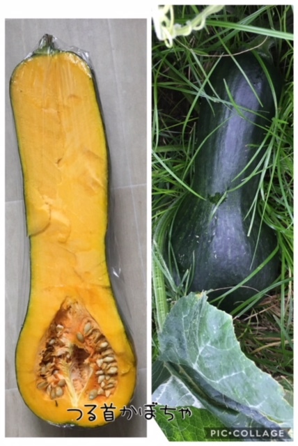 捨てた かぼちゃのタネからの贈り物です。堆肥場所で立派に育っています。鶴の首のようだというので「鶴首かぼちゃ」というそうです。