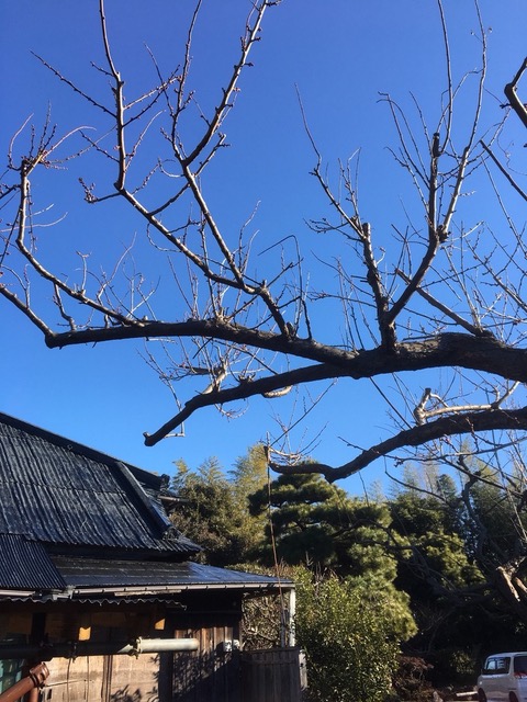 平成30年1月14日抜けるような青空のもと、本日は雨岳文庫さんの梅林の剪定作業に参加させていただきました。