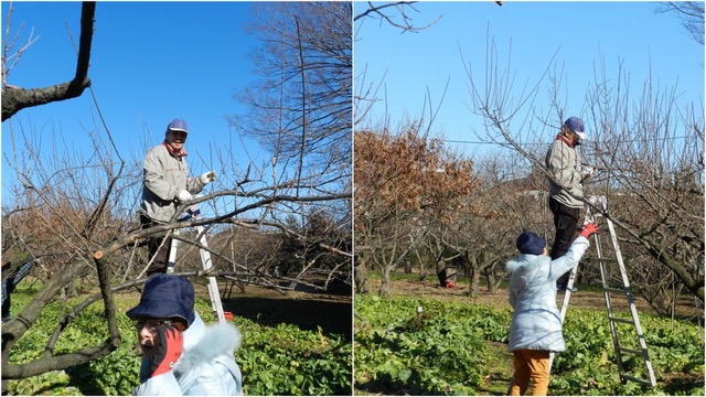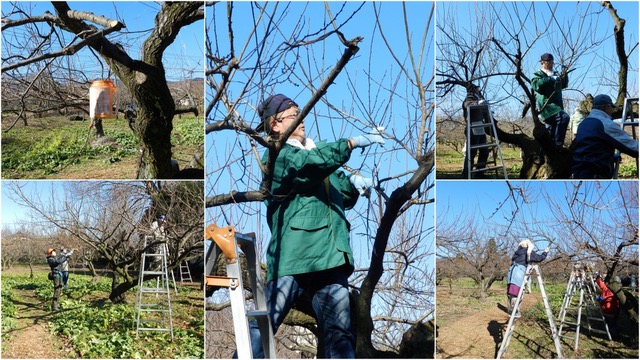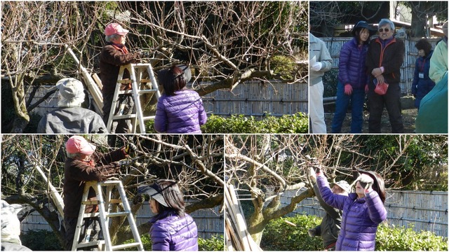 蕾がたくさんついた枝を切るのはちょっとかわいそうな気もするのですが、綺麗な花を咲かせ、6月には立派な梅の実がなるように熟練の先輩方に教えていただきながら剪定作業を楽しみました。