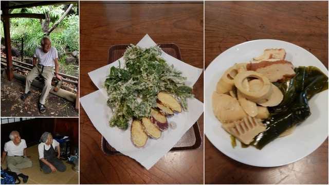 山口家のご当主ご夫妻。いつもありがとうございます。本日の雨岳ランチは、お茶の葉の天ぷらやこごみサツマイモ等も揚げていただきました。筍の煮物は天下一品、智子さんのお味です。本日の参加者29名以上 続きを隠す<<