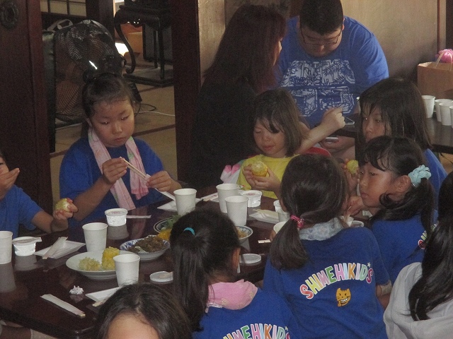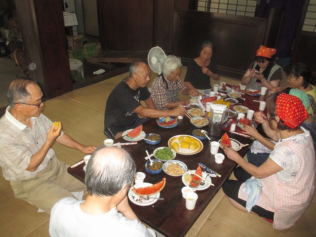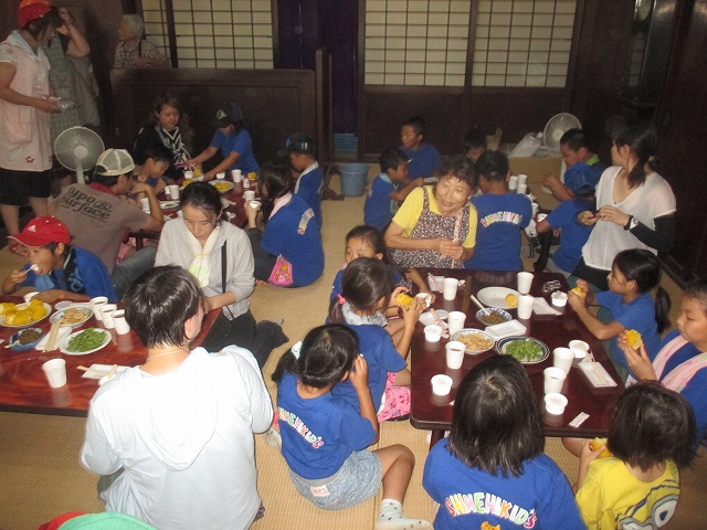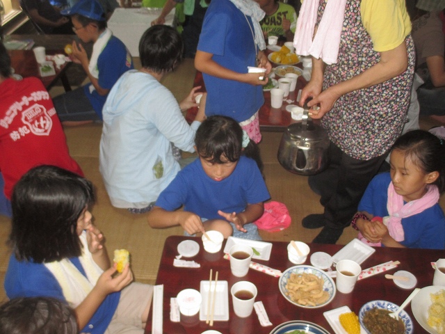 今日は〆引きの夏祭りで、例年通り山口家の庭が子供神輿のお旅所になり、飲み物やアイスクリーム、枝豆、トウモロコシ、筍の煮物などがふるまわれました。