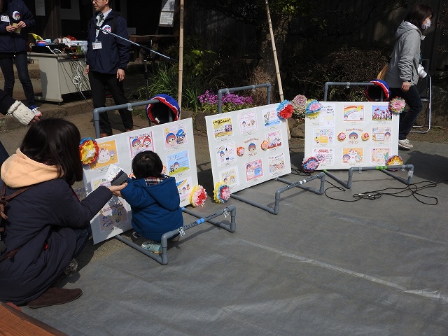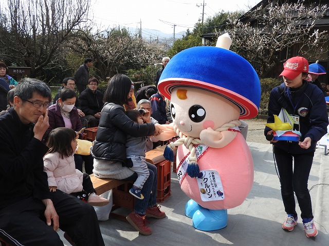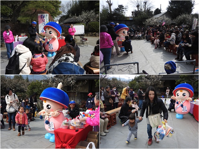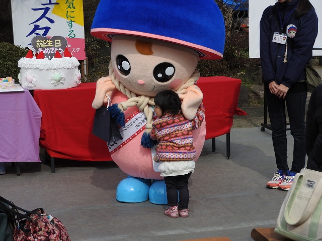 春色フェスタ5日目は、クルリンの誕生日のお祝いが行われました。ハッピバースデイの歌をみんなで歌い、クルリンへの祝いの手紙やプレゼント、クルリンからアメの配布の後ビンゴゲームで盛り上がりました。最後にクルリンと一緒の撮影会。