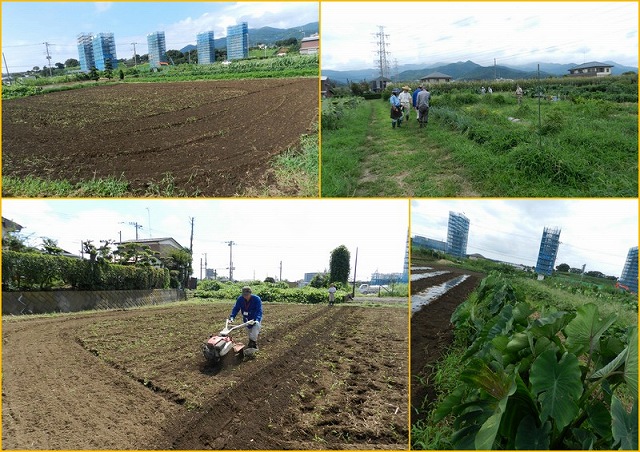 圃場の耕作、畝づくり、雑草取り等。秋野菜の植え付け準備が整いました。